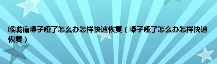 大家好,喉咙痛嗓子哑了怎么办怎样快速恢复,嗓子哑了怎么办怎样快速恢复很多人还不知道,现在让我们一起来看看吧!