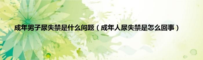 本文,成年男子尿失禁是什么问题,成年人尿失禁是怎么回事到此就分享完毕,希望对大家有所帮助。