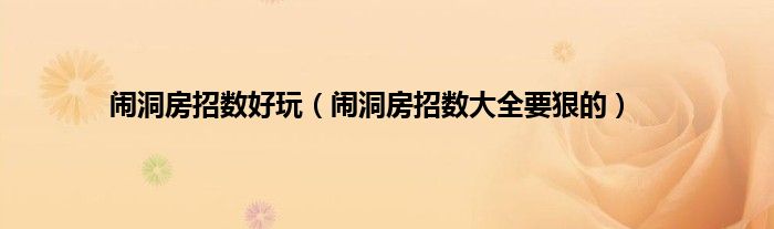 大家好,小问来为大家解答以上问题。闹洞房招数好玩,闹洞房招数大全要狠的这个很多人还不知道,现在让我们一起来看看吧!