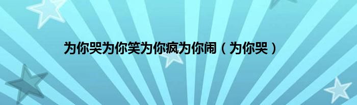 大家好,小问来为大家解答以上问题。为你哭为你笑为你疯为你闹,为你哭这个很多人还不知道,现在让我们一起来看看吧!