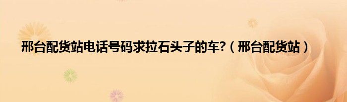 大家好,小问来为大家解答以上问题。邢台配货站电话号码求拉石头子的车?,邢台配货站这个很多人还不知道,现在让我们一起来看看吧!