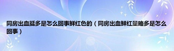 大家好,同房出血挺多是怎么回事鲜红色的,同房出血鲜红量略多是怎么回事很多人还不知道,现在让我们一起来看看吧!