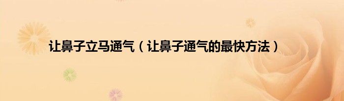 本文,让鼻子立马通气,让鼻子通气的最快方法到此就分享完毕,希望对大家有所帮助。