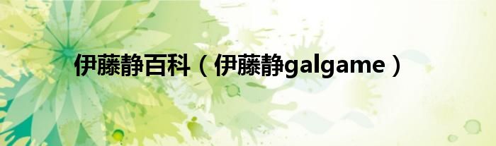 大家好,小问来为大家解答以上问题。伊藤静百科,伊藤静galgame这个很多人还不知道,现在让我们一起来看看吧!