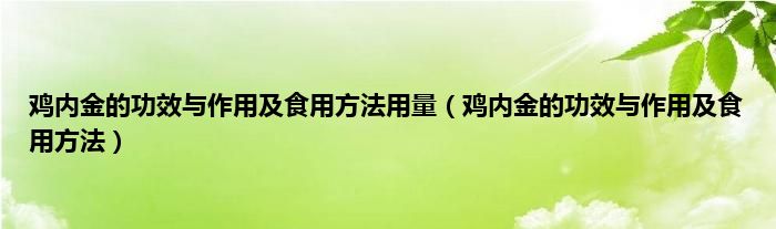 本文,鸡内金的功效与作用及食用方法用量,鸡内金的功效与作用及食用方法到此就分享完毕,希望对大家有所帮助。