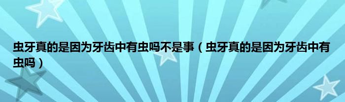 本文,虫牙真的是因为牙齿中有虫吗不是事,虫牙真的是因为牙齿中有虫吗到此就分享完毕,希望对大家有所帮助。