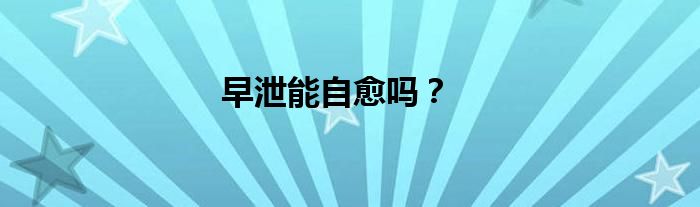 本文,早泄能自愈吗?到此就分享完毕,希望对大家有所帮助。
