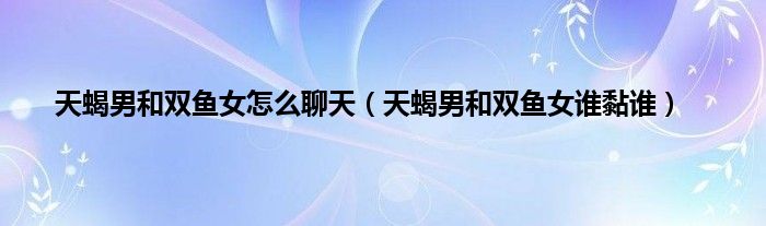 大家好,综合小编来为大家讲解下。天蝎男和双鱼女怎么聊天,天蝎男和双鱼女谁黏谁这个很多人还不知道,现在让我们一起来看看吧!