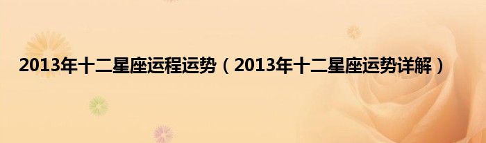 本文2013年十二星座运程运势,2013年十二星座运势详解到此分享完毕,希望对大家有所帮助。