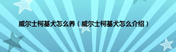 本文,威尔士柯基犬怎么养,威尔士柯基犬怎么介绍到此就分享完毕,希望对大家有所帮助。