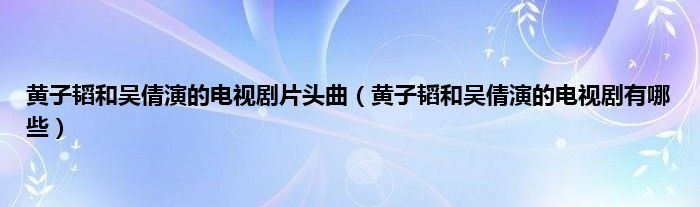 本文,黄子韬和吴倩演的电视剧片头曲,黄子韬和吴倩演的电视剧有哪些到此就分享完毕,希望对大家有所帮助。