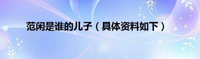 本文,范闲是谁的儿子,具体资料如下到此就分享完毕,希望对大家有所帮助。