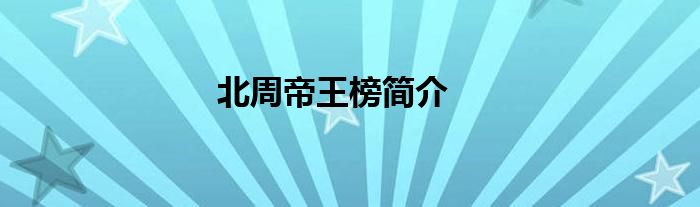 大家好,北周帝王榜简介很多人还不知道,现在让我们一起来看看吧!