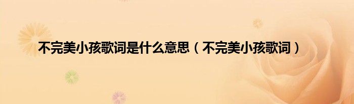 本文,不完美小孩歌词是什么意思,不完美小孩歌词到此就分享完毕,希望对大家有所帮助。