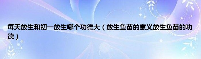 本文,每天放生和初一放生哪个功德大,放生鱼苗的意义放生鱼苗的功德到此就分享完毕,希望对大家有所帮助。