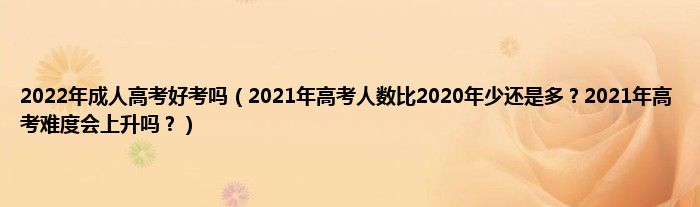 大家好,2022年成人高考好考吗,2021年高考人数比2020年少还是多?2021年高考难度会上升吗?很多人还不知道,现在让我们一起来看看吧!