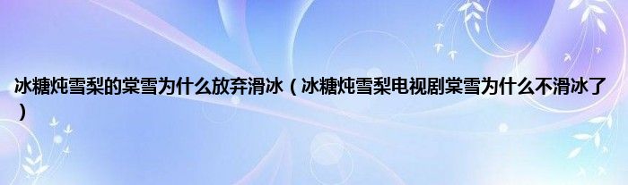 本文,冰糖炖雪梨的棠雪为什么放弃滑冰,冰糖炖雪梨电视剧棠雪为什么不滑冰了到此就分享完毕,希望对大家有所帮助。