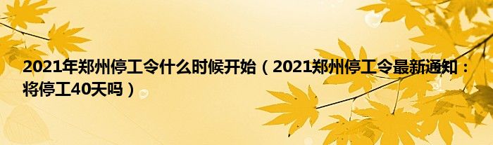 本文,2021年郑州停工令什么时候开始,2021郑州停工令最新通知:将停工40天吗到此就分享完毕,希望对大家有所帮助。