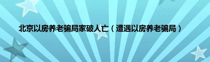 本文,北京以房养老骗局家破人亡,遭遇以房养老骗局到此就分享完毕,希望对大家有所帮助。