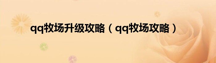 本文,qq牧场升级攻略,qq牧场攻略到此就分享完毕,希望对大家有所帮助。