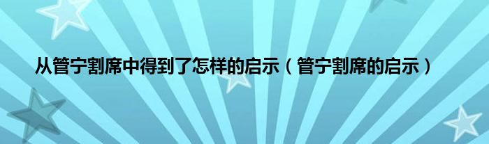 大家好,从管宁割席中得到了怎样的启示,管宁割席的启示很多人还不知道,现在让我们一起来看看吧!