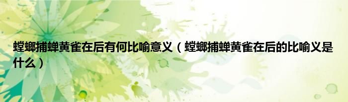 本文,螳螂捕蝉黄雀在后有何比喻意义,螳螂捕蝉黄雀在后的比喻义是什么到此就分享完毕,希望对大家有所帮助。