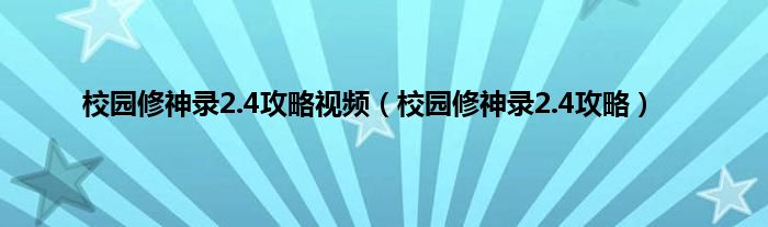 本文,校园修神录2.4攻略视频,校园修神录2.4攻略到此就分享完毕,希望对大家有所帮助。