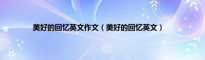 本文,美好的回忆英文作文,美好的回忆英文到此就分享完毕,希望对大家有所帮助。