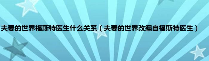 大家好,夫妻的世界福斯特医生什么关系,夫妻的世界改编自福斯特医生很多人还不知道,现在让我们一起来看看吧!