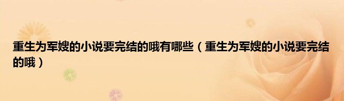 大家好,重生为军嫂的小说要完结的哦有哪些,重生为军嫂的小说要完结的哦很多人还不知道,现在让我们一起来看看吧!
