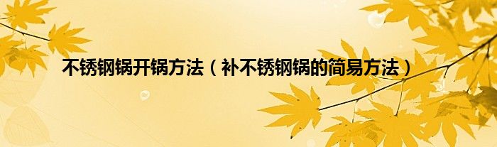 本文,不锈钢锅开锅方法,补不锈钢锅的简易方法到此就分享完毕,希望对大家有所帮助。