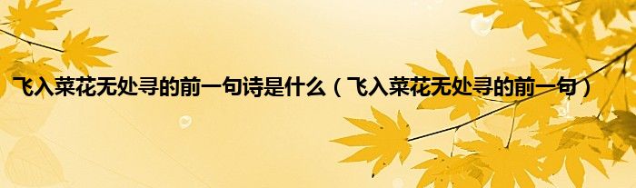 本文,飞入菜花无处寻的前一句诗是什么,飞入菜花无处寻的前一句到此就分享完毕,希望对大家有所帮助。