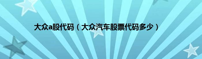 大家好,大众a股代码,大众汽车股票代码多少很多人还不知道,现在让我们一起来看看吧!