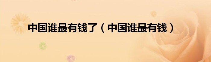 中国谁最有钱了(中国谁最有钱)
