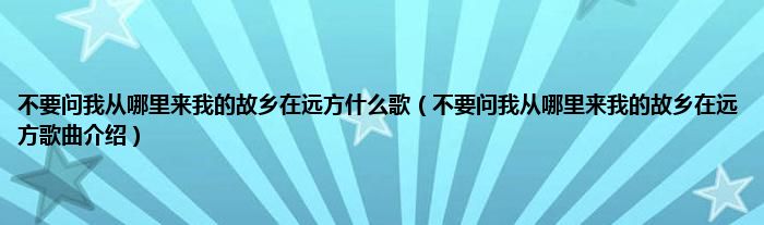 本文,不要问我从哪里来我的故乡在远方什么歌,不要问我从哪里来我的故乡在远方歌曲介绍到此就分享完毕,希望对大家有所帮助。