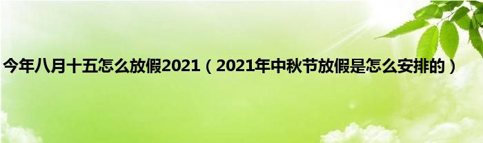 本文,今年八月十五怎么放假2021,2021年中秋节放假是怎么安排的到此就分享完毕,希望对大家有所帮助。