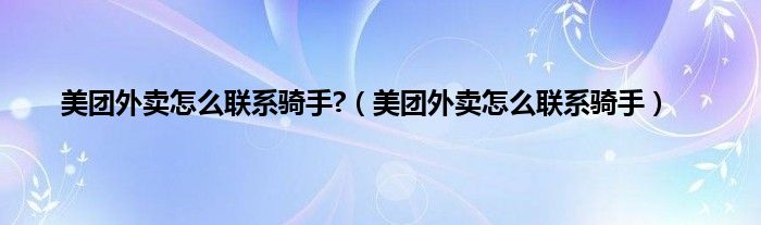 本文,美团外卖怎么联系骑手?,美团外卖怎么联系骑手到此就分享完毕,希望对大家有所帮助。