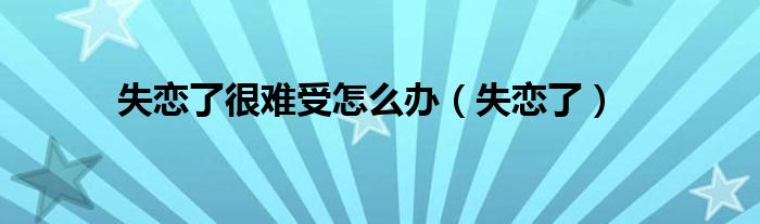 大家好,小问来为大家解答以上问题。失恋了很难受怎么办,失恋了这个很多人还不知道,现在让我们一起来看看吧!