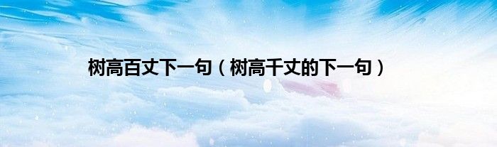 大家好,树高百丈下一句,树高千丈的下一句很多人还不知道,现在让我们一起来看看吧!