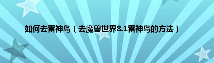 本文,如何去雷神岛,去魔兽世界8.1雷神岛的方法到此就分享完毕,希望对大家有所帮助。