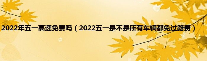 本文,2022年五一高速免费吗,2022五一是不是所有车辆都免过路费到此就分享完毕,希望对大家有所帮助。