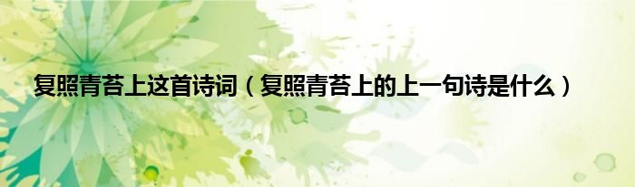 本文,复照青苔上这首诗词,复照青苔上的上一句诗是什么到此就分享完毕,希望对大家有所帮助。