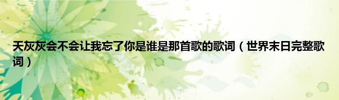 本文,天灰灰会不会让我忘了你是谁是那首歌的歌词,世界末日完整歌词到此就分享完毕,希望对大家有所帮助。